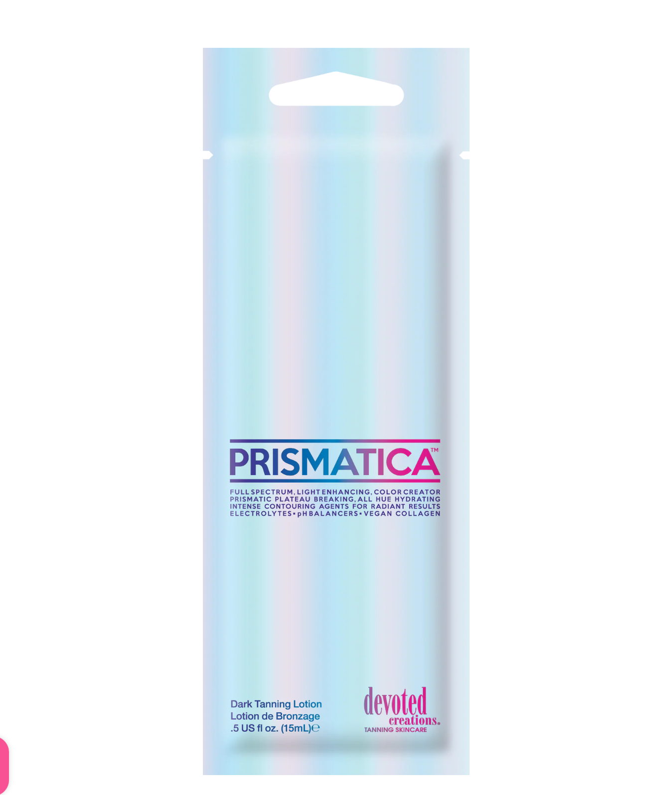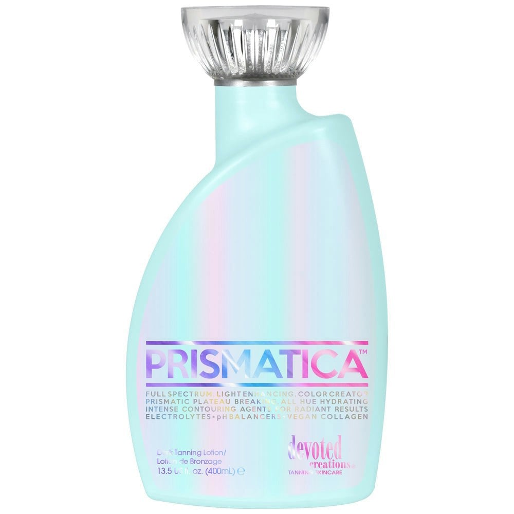 It’s time to Glisten and glow with Prismatica, this chromatic colour enhancing formula is designed to work with Blue light, Red light and UV light to help you achieve high intensity results! Formulated with pH balancing agents, plateau breakers, Vegan Collagen and Probiotics your skin will be transformed with a tighter, more toned, youthful looking appearance. No need to sacrifice when it comes to your colour, for radiant results from any light hue, Prismatica is the one for you!